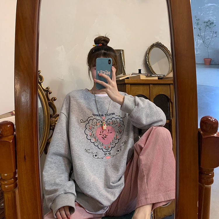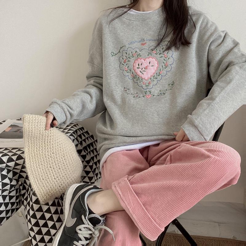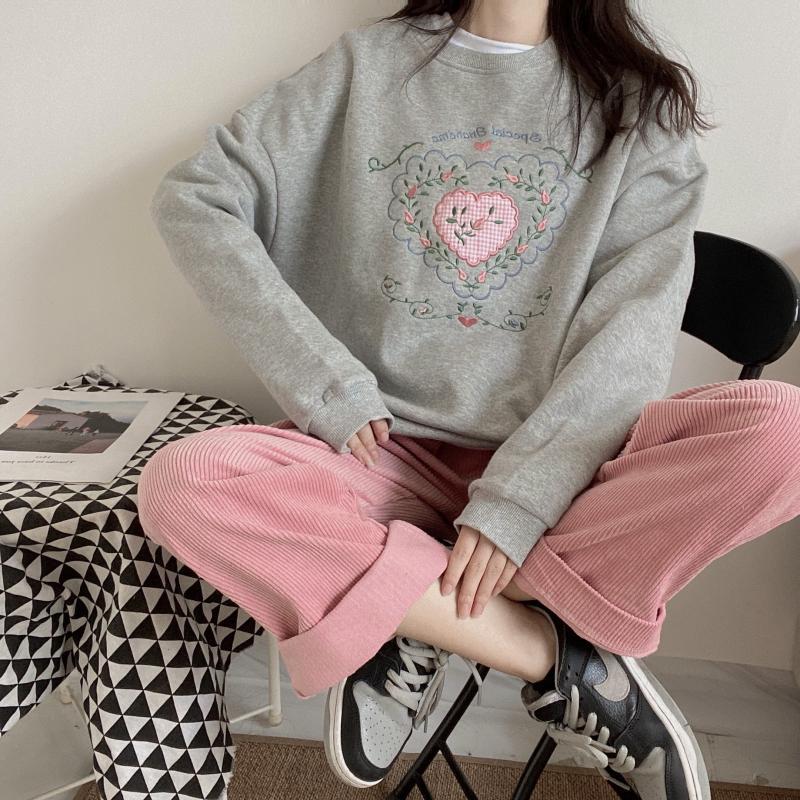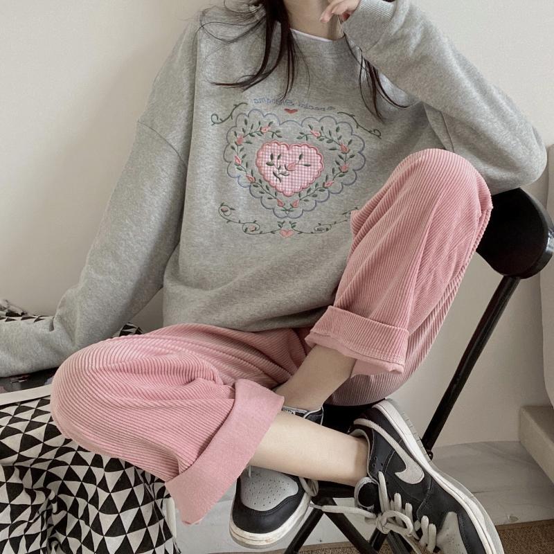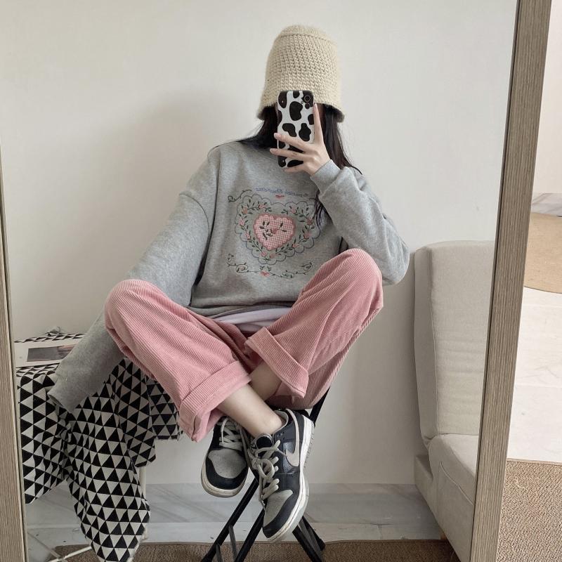 Made from high-quality cotton, these sweatpants offer a relaxed fit and a wide-leg silhouette that flatters every body type. Available in a delightful combination of gray for the sweater and regular pink for the pants, this outfit is perfect for casual outings or lounging at home.